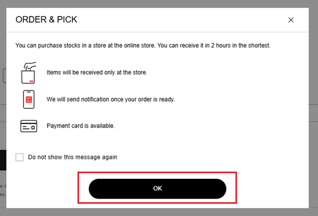 ※ If the [PICK UP TODAY] button is not displayed, the store either does not have the product in stock or the service is not available.